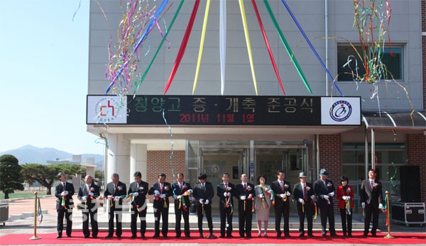 1일 오전 청양고(교장 백운기) 체육관 청봉관에서 청양고등학교 증․개축 준공식이 김종성 충청남도교육감을 비롯한 청양교육지원청교육장, 청양대학교총장, 청양군수, 군의회의장, 도의원, 교육위원, 지역민 등 200여명의 교육 가족이 참여한 가운데 펼쳐졌다.