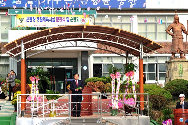 한편 이번 사업은 2010 문화체육관광부의 운동장 생활체육시설 조성사업에 선정돼 국민체육진흥공단 기금 및 특별교부금 5억원을 지원받아 추진됐으며, 인조잔디 구장, 우레탄 트랙, 조명탑 등이 조성됐다.