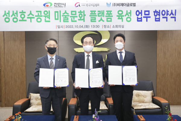 이번 협약에 따라 한국미술협회는 대한민국미술대전 등의 전시회를 천안에서 개최하기로 했으며, 비제이글로벌은 성성호수공원 인근에 개발 중인 복합문화 힐링타운인 UCC(Urbane Creative City) 단지 내에 한국미술협회 전시 공간을 제공하기로 했다.