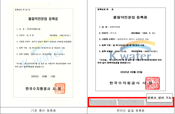 또한, 등록증 직접 발급 기능을 통하여 언제든지 위변조가 불가한 등록증을 출력하여 활용할 수 있다. 이를 통해 국민 불편 최소화뿐 아니라 ‘물절약전문업’ 활성화와 물산업 발전에도 기여할 것으로 기대하고 있다.
