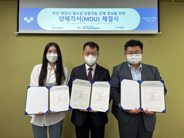 김주영 특성화사업팀장은 “아산이 AI 특화도시로 선정된 만큼 청소년을 위한 다양한 교육 프로그램을 준비하겠다”며 “대학 및 마을교육공동체 간 활발한 교류와 협력 증진을 통해 AI 교육의 토대를 쌓아가겠다”고 밝혔다.