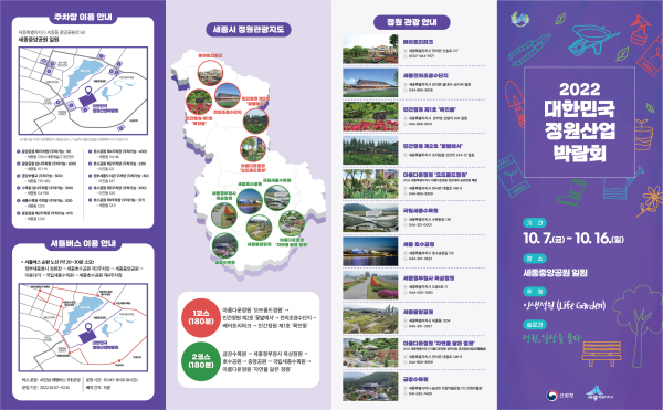 시가 주관하고, 산림청이 주최하는 2022 대한민국 정원산업박람회는 ‘정원, 일상을 품다’라는 주제로 오는 16일까지 열흘간 세종중앙공원 일원에서 개최된다.