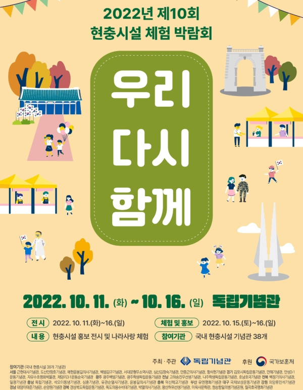 14일 독립기념관에 따르면, 국내 현충시설의 중심기관으로서 역할을 다하고, 국권회복과 국가수호를 위해 공헌한 분들의 희생정신을 기념하기 위해 지난 2011년부터 박람회를 이어오고 있다.