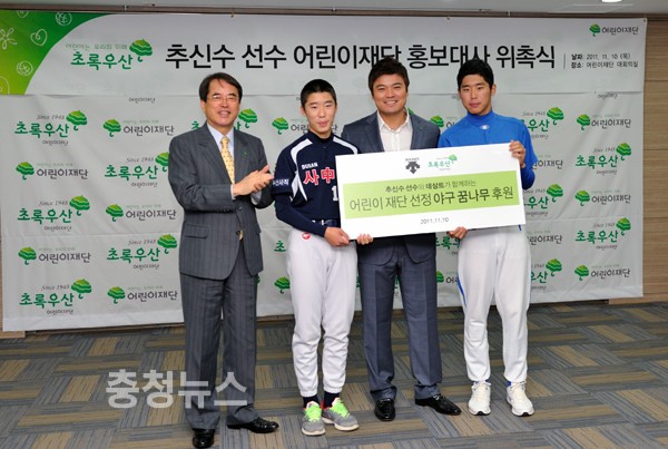 위촉식에는 추신수 선수를 롤 모델로 삼고 있는 어린이재단 야구 꿈나무 김신호 군(15)과 김영환 군(15)이 자리를 함께해 의미를 더했다.