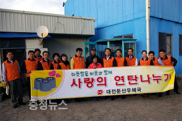 대전둔산우체국(국장 이완직)은 지난 9일 추운 겨울에 어려운 생활을 하고 있는 이웃을 찾아 ‘사랑의 연탄배달 행사’를 실시했다.