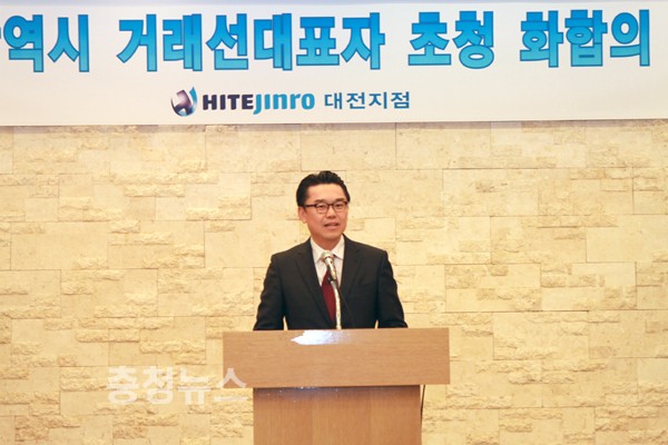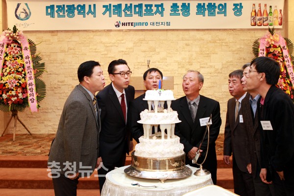 지난 9월 1일 하이트맥주와 진로의 통합법인으로 새롭게 출범한 하이트진로(주)는 16일 유성호텔 킹홀에서 대전지역 거래선 대표 사장님들을 초청한 가운데 화합의장을 마련했다.