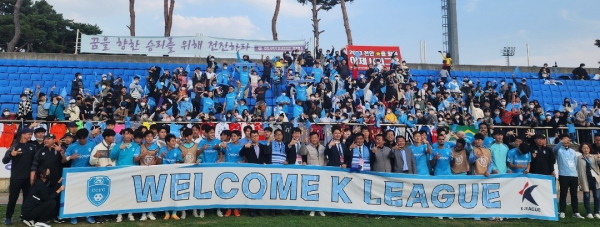 경기를 마친 후 천안시축구단 선수들은 팬들과 박성완 충남축구협회장, 이기호 천안시축구협회장 등 구단 관계자들 및 신동헌 천안시 부시장과 시·도의원 등이 어우러져 K리그 참가를 축하하는 세리머니를 펼쳤다.