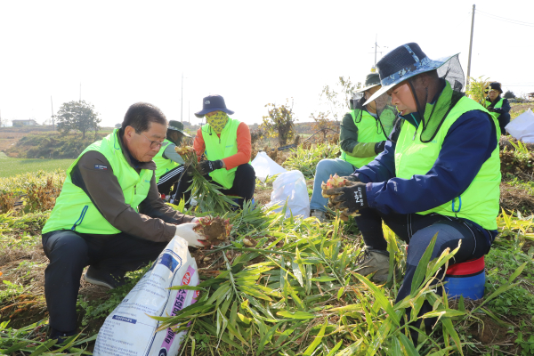 [충청뉴스 최형순 기자] 충남세종농협(본부장 이종욱)은 본격적인 김장철을 맞아 일손부족으로 수확에 어려움을 겪고 있는 서산시 팔봉면 생강 재배 농가를 찾아 농촌 일손돕기 봉사활동을 29일 펼쳤다.