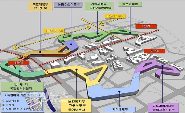 2012년 총리실, 기재부, 농림부, 환경부, 국토부, 공정위 등 6개부처 이전
