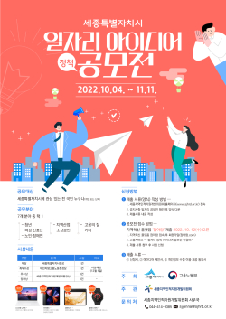 [충청뉴스 최형순 기자] 세종시가 전 국민이 제안한 아이디어로 지역 특성과 여건에 맞는 일자리 정책을 발굴하기 위해 오는 11일까지 ‘일자리 아이디어 정책 공모전’을 개최한다.