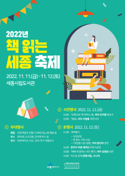 [충청뉴스 최형순 기자] 세종시가 세종시립도서관 개관 1주념을 기념해 ‘우리들의 도서관, 시민과 함께 성장하다’를 주제로 오는 11일부터 12일까지 시립도서관 등에서 ‘책 읽는 세종 축제’를 개최한다.