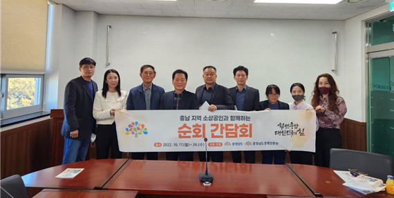 9일 진흥원에 따르면 지난 10월 한 달 동안 논산시, 계룡시, 금산군, 청양군, 예산군, 태안군 6개 시·군을 찾아 지역 소상공인을 대상으로 ‘2022 찾아가는 소상공인 순회 간담회’를 진행했다.