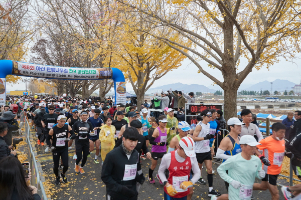 이날 전국의 마라토너 2,200여 명이 참가한 가운데, 염치읍 은행나무길 광장을 출발해 곡교천을 따라 달리는 하프, 10㎞, 5㎞ 코스가 진행됐다.