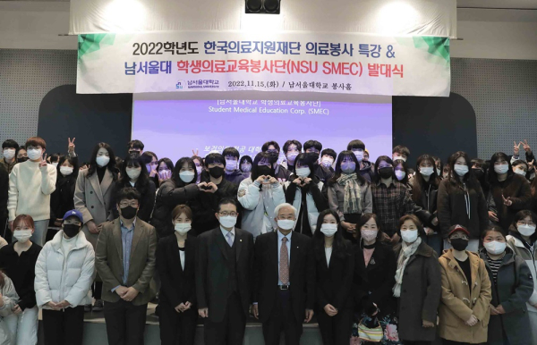 [충청뉴스 박동혁 기자] 남서울대학교 사회봉사지원센터는 15일 교내 지식정보관에서 ‘학생의료교육봉사단’ 발대식을 개최했다.