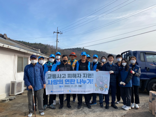 [충청뉴스 박동혁 기자] 아산시시설관리공단(이하 공단)은 21일 한국교통안전공단 대전세종충남본부와 교통사고 피해 가정을 방문해 ‘사랑의 연탄’ 500장을 전달했다고 밝혔다.