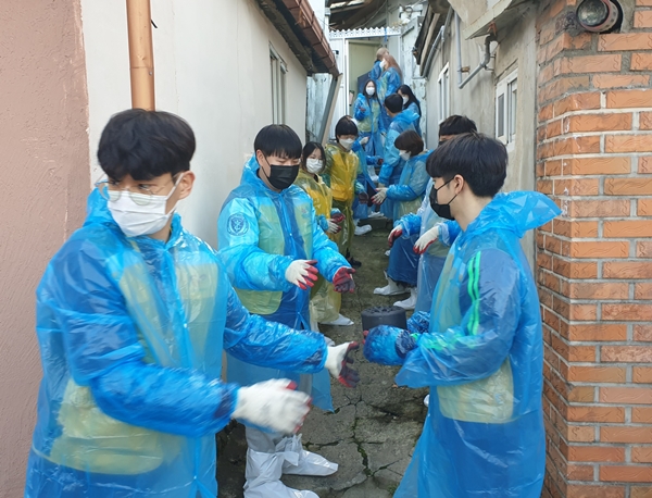 을지대 연탄 및 의료약품키트 나눔 봉사 모습