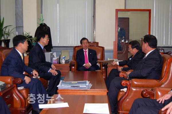 충청권선거구증설 정치권협의회가 5일 한나라당 홍문표 최고위원이 동석한 가운데 홍준표 대표에게 세종시 독립선거구 획정과 관련 건의문을 전달했지만 원론적인 이야기만 오간 것으로 알려졌다.