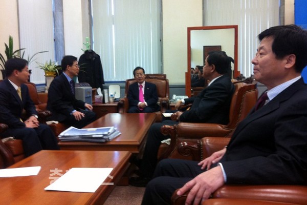 ▲ 건의문 전달과 함께 충청권 선거구 증설의 당위성을 직접 설명했다.