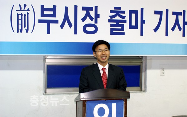 ▲ 이영규 前 부시장의 출마 기자회견 모습.