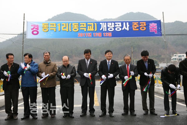 금산군 제원면 동곡리 주민들의 숙원사업인 ‘동곡교’ 개량공사가 지난 12일 박동철 금산군수, 김복만 군의회 의장을 비롯 각급 기관 단체장, 주민 등 50여명이 참석한 가운데 준공식을 가졌다.