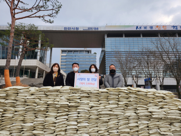 [충청뉴스 박동혁 기자] 충남 천안시는 한살림천안아산소비자생활협동조합이 지역 내 어려운 이웃에게 전달해 달라며 사랑의 쌀 2kg 800포를 기탁했다고 8일 밝혔다.