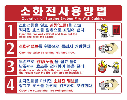 소화기와 더불어 화재 발생 초기에 신속하게 진압할 수 있는 옥내소화전 사용법은 대부분 한글로만 표기돼있어 외국인이 사용하는 데 불편함이 있었다.