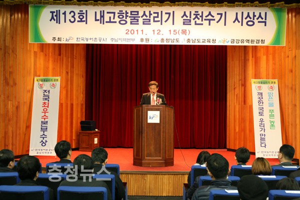 한국농어촌공사 충남지역본부(본부장 김태웅)는 15일 ‘제13회 내고향 물살리기 운동 학생 및 주부 실천수기’시상식을 6층 대강당에서 개최했다.