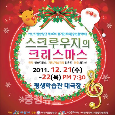 올해 마지막을 장식할 이번 연주회의 부제는 “스크루우지의 크리스마스”로 찰스 디킨스의 ‘크리스마스 캐롤’을 모티브로 아산시립합창단이 뮤지컬로 새롭게 창작한 작품이다.