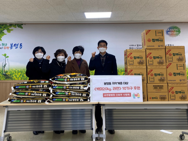 [충청뉴스 박동혁 기자] 충남 천안시 봉명동은 지난 20일 순천향대학교 천안병원 간호부 사랑회가 저소득 취약계층을 위해 백미(20kg) 10포, 라면 10박스를 후원했다고 밝혔다.