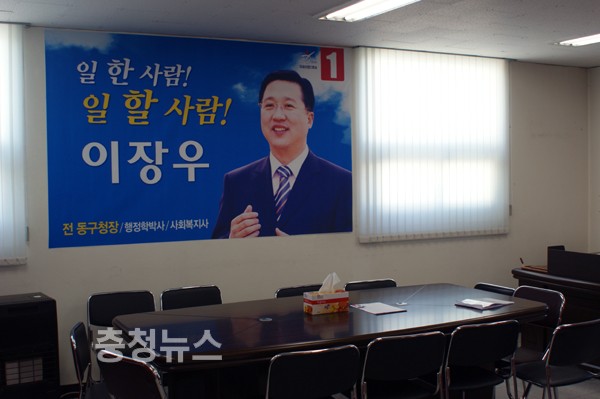 먼저 삼성네거리에 위치한 이장우 예비후보 선거사무실은 자유총연맹 동구지회장으로 활동하고 있는 이상래 사무장이 자리를 지키고 있었다.