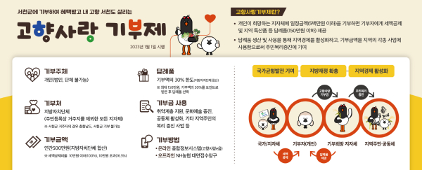 한편, 고향사랑기부제는 인구감소와 청년 유출 등으로 소멸 위기에 처한 지역에 기부 활동을 통해 지방재정 확충과 지역경제 활성화를 목표로 추진하는 제도다.