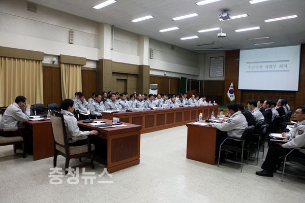 충남경찰(청장 정용선)은 28일 경찰청 3층 대회의실에서 올 한해를 정리하고 내년도 정책방향을 수립하기 위한 충남경찰 지휘부 회의를 개최했다.