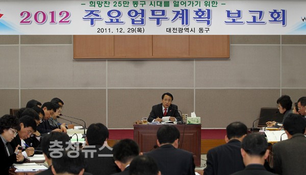 대전 동구는 한현택 동구청장을 비롯해 담당이상 간부공무원 120여명이 참석한 가운데 29일 구청 대회의실에서 ‘2012년 주요업무계획 보고회’를 개최했다.