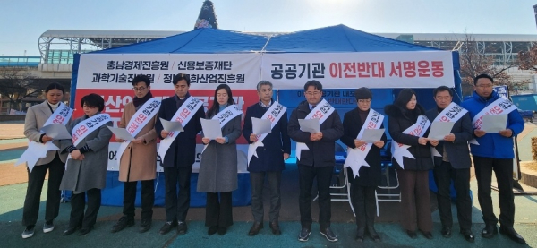 이들은 “충남 인구 절반에 육박하는 아산·천안 도민들은 중소기업 자금을 받기 위해 1시간 이상 이동하는 불편을 겪고, 아산·천안에 집중된 중소·벤처기업들은 거리가 멀어져 공공기관과 협업을 주저할 것”이라고 문제점을 지적했다.