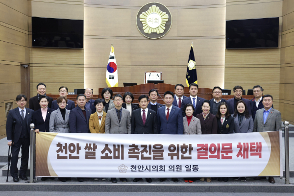천안시의회는 천안 쌀 소비 촉진 경쟁력 강화를 위해 관내 주조업체의 천안 쌀 구매 확대와 판로지원 및 홍보 등의 각종 시책 마련을 촉구하며, 이에 대한 조속한 추진을 요구했다.