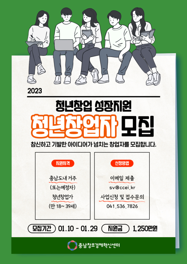 충남창조경제혁신센터, ‘청년창업 성장지원사업’ 참가자 모집