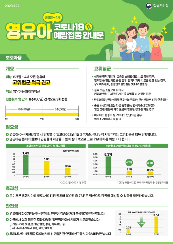 이번 영유아 예방접종은 6개월~4세에 해당하는 영유아용 코로나19 백신의 허가·도입에 따라 실시한다.