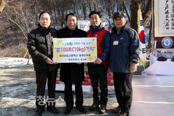 대전상고 동문들로 구성된 청원산악회(회장 윤정섭)는 동구지역 독거노인 등 소외계층을 위한 사랑의 쌀을 동구(한현택 청장)에 기탁했다.