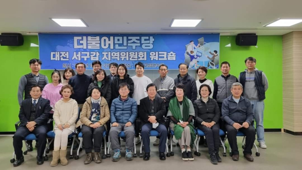 더불어민주당 대전 서구갑 지역위원회 워크숍 기념촬영 모습. (사진=김동성 전 서구의원 SNS 갈무리)