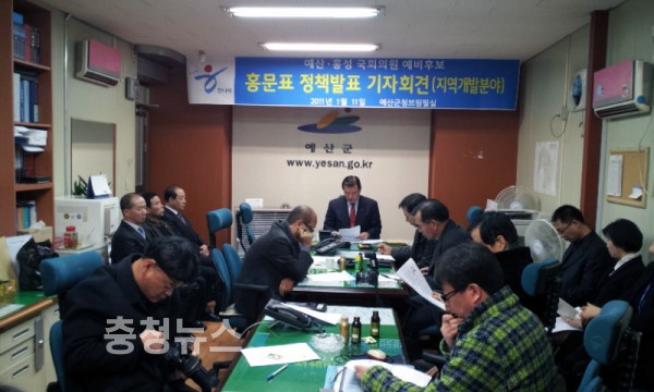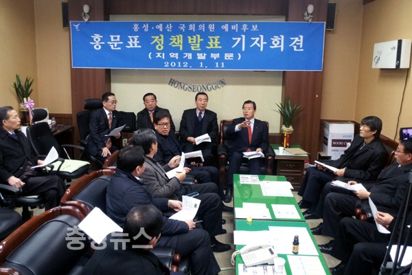 한나라당 소속 대전·충남출마자 중 유일하게 민주통합당과 자유선진당 후보들과의 격차를 벌리고 있는 홍문표 홍성·예산 예비후보가 본격적인 정책 대결을 위해 지역개발분야 공약 발표로 지역 발전의 비전을 제시했다.