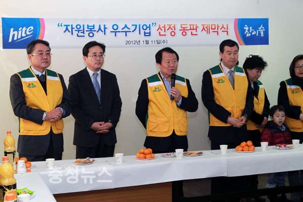 ▲ 하이트진로 대전지점에서 자원봉사 우수기업 동판 제막식을 가졌다.