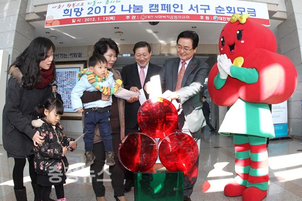 대전 서구(구청장 박환용)는 12일 서구청 1층 로비에서 ‘희망2012 나눔 캠페인’ 이웃돕기 성금 순회모금 행사를 전개했다.