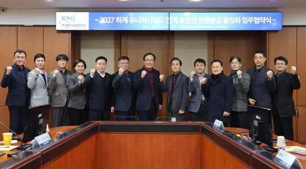 [충청뉴스 이성현 기자] 한국과학기술정보연구원(KISTI)이 ‘2027 하계 유니버시아드 경기’와 연계한 충청지역의 스마트 관광산업 활성화를 위한 업무협약식을 가졌다고 8일 밝혔다.