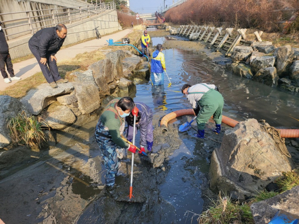 시는 최근 하상 준설차와 고압 살수기 등 장비와 인력 15명을 투입해 악취가 심한 온천천 하부공간인 경남아너스빌아파트 부근에서 곡교천까지 수질정화를 실시했다.