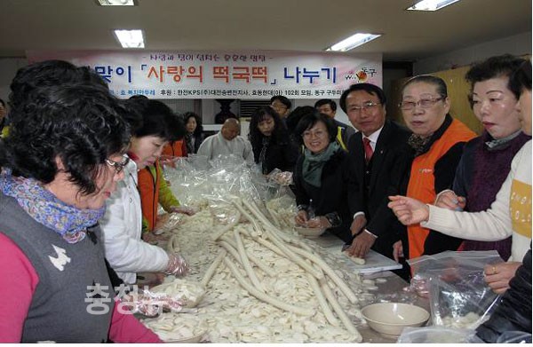 대전시 동구(청장 한현택) 효동 주민센터(동장 권오숙)는 16일 孝 복만두레 주관으로 이웃간의 정을 듬뿍 담은 설 맞이 ‘사랑의 흰떡나누기’ 행사를 펼쳐 훈훈한 설 명절 분위기를 자아냈다.