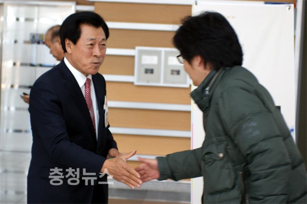 ▲ 민주통합당 송석찬 예비후보는 가장 먼저 행사장에 도착해 참석자들과 인사를 나눴다.