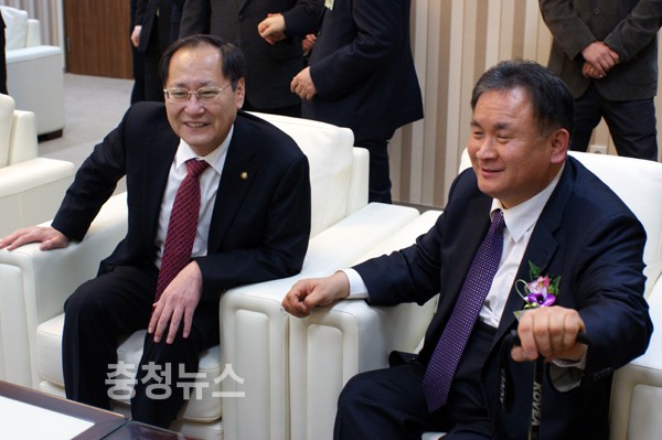 또 박성효 前 대전시장도 이 자리에 참석해 기관장들과 환담을 나누고, 행정고시 동기인 홍석우 지식경제부장관과 인사를 나눴다.