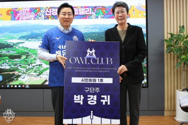 [충청뉴스 박동혁 기자] 충남아산프로축구단(이하 충남아산FC)은 구단주인 박경귀 아산시장이 구단 2023시즌 시민회원권인 ‘OWL-CLUB’의 1호 구매자로 나섰다고 14일 밝혔다.
