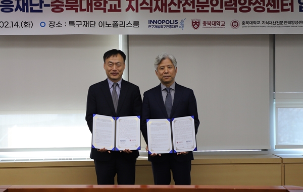 [충청뉴스 이성현 기자] 연구개발특구진흥재단이 14일 충북대학교 지식재산전문인력양성센터와 국제과학비즈니스벨트 및 연구개발특구 내 중소기업의 지식재산 교육 및 영업비밀 보호를 위한 컨설팅 등 지식재산권 관련 협력을 위해 업무협약을 체결했다.