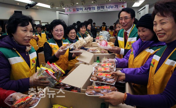 대전 동구자원봉사협의회(회장 박희순)가 민족 고유의 설 명절을 앞두고 25일 중앙시장 이벤트홀에서 ‘사랑의 흰떡 나누기’ 행사를 가졌다.
